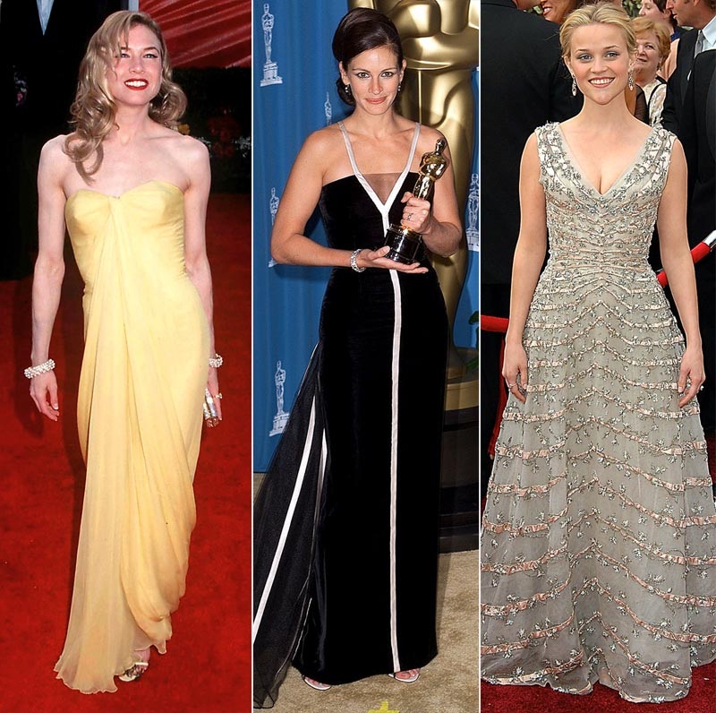 Renee, Julia, Reese and Penelope (photo below) all won Oscars in vintage: Renee in Jean Desses, Julia in Valentino, and Reese in Dior.